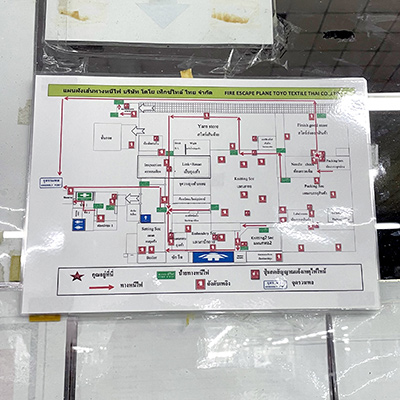 • Evacuation route maps are displayed in easily visible locations for employees. Additionally, the premises are kept tidy and unobstructed to ensure that evacuation routes are not impeded.